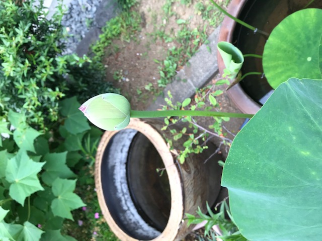 写真は、昨日の朝に見ることが出来た蓮の花の蕾です。