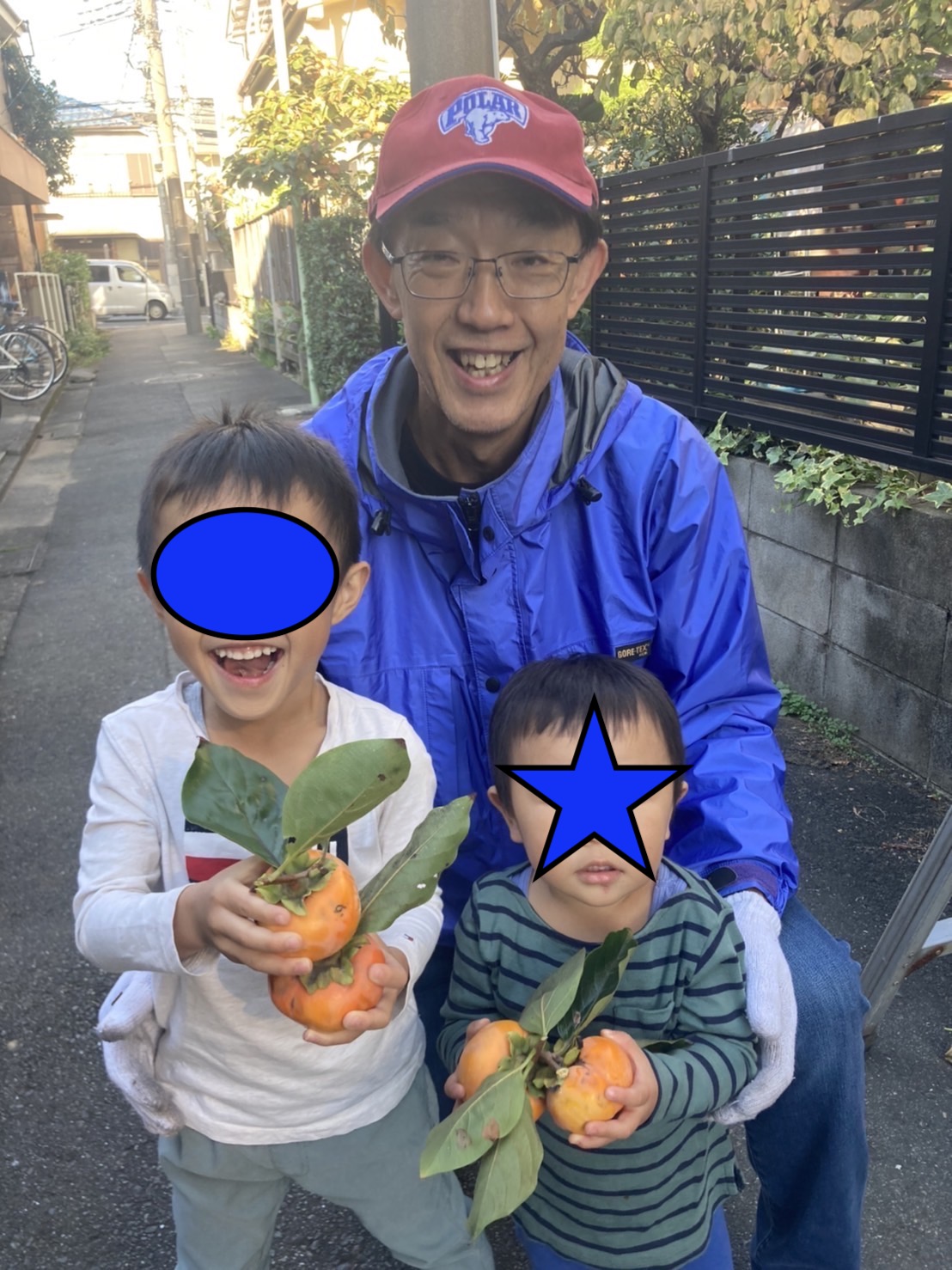 写真は、我が家の小さな庭にある柿の木から たわわに成った実を 先日 孫と一緒に もいだ時のもの...。