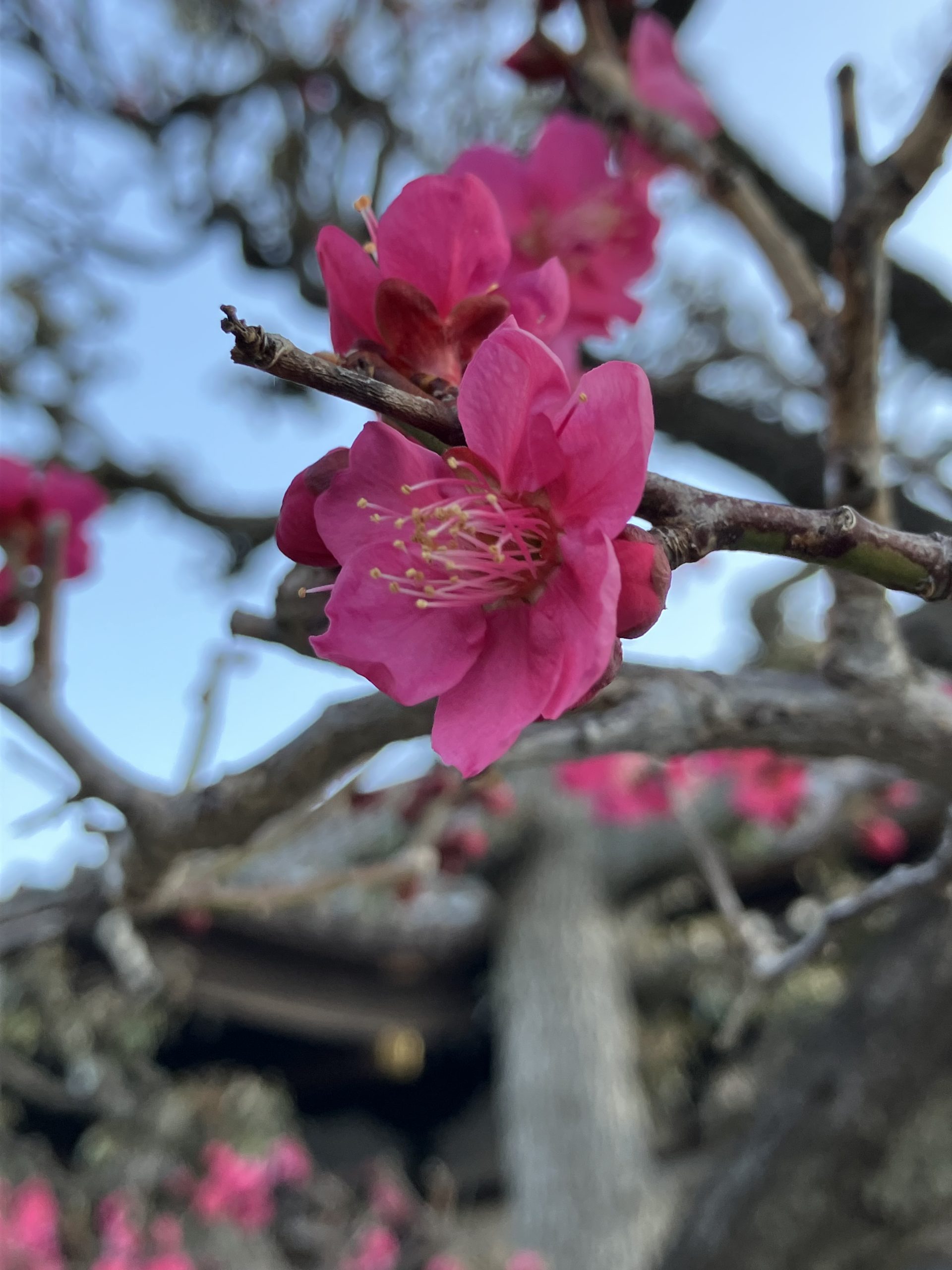 梅、河津桜が見頃になり、杏の花が開花しています。